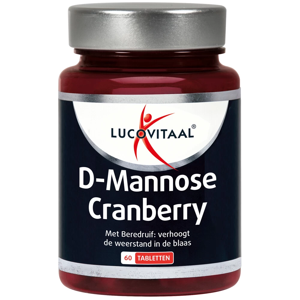 Lucovitaal D-MannoseD-Mannose Cranberry tabletten van Lucovitaal bevat een combinatie van werkzame stoffen die een gezonde werking van de blaas ondersteunen. Beredruif is toegevoegd voor sterke blaas, bekkenbodem- en blaassluitspieren.¹ Het is goed voor de blaasfunctie, houdt de blaas schoon en verhoogt de weerstand in de blaas.¹¹Gezondheidsclaims in afwachting van Europese toelating.,li>Vitamine C ondersteunt het immuunsysteem en zorgt zo mede voor een goede weerstand.D-Mannose is een soort