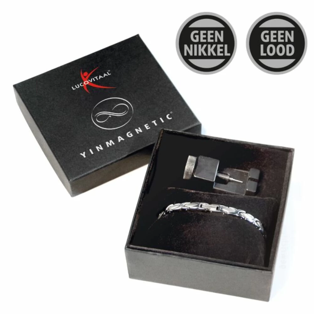 Lucovitaal Magneet Armband ZilverLucovitaal Yinmagnetic Magneet Armband Zilver is te dragen door zowel mannen als vrouwen. De armband is makkelijk in tekorten dus geschikt voor elke pols. De magneet armband is gemaakt van duurzaam gepolijst metaal, een metaal legering met corrosie bestendigheid van de allerbeste kwaliteit met 5 elementen als neodymium, germanium, far infrared, toermalijn en koper met maar liefst 3000 Gauss.Zowel voor mannen als vrouwenGemaakt van duurzaam gepolijst edelmetaalOxi