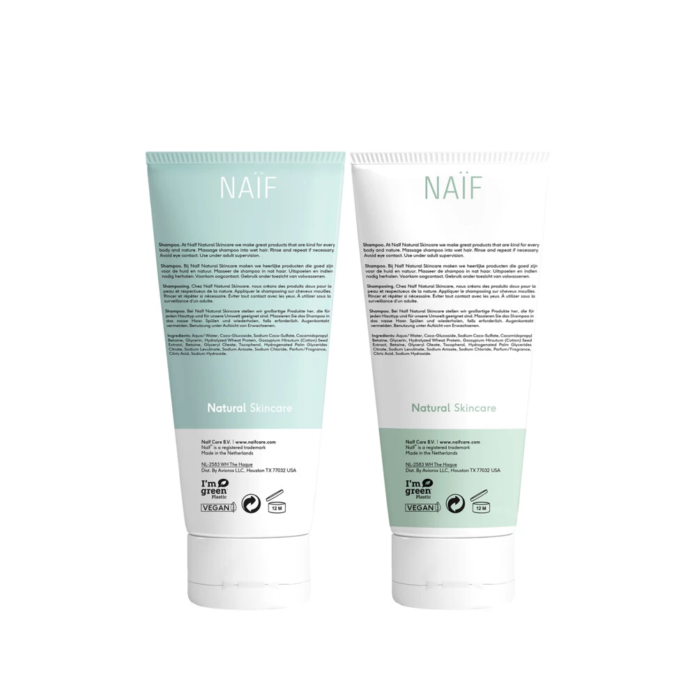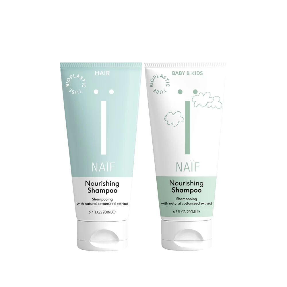 Naïf Family Hair bundel voor Baby & KidsDe Naïf Nourishing Shampoo zorgt voor schoon haar, iedere dag weer. En dat wil je. Met dit Family Hair Pakket ben je in één klap klaar.De Nourishing Shampoou0027s voor volwassenen en kind is geschikt voor ieder haartype en bevat geen irriterende ingrediënten. Dus geen PEG, SLS/SLES, Phenoxyethanol, Parabenen en Minerale Olie. De shampoou0027s zijn dermatologisch getest en vegan. Plus: ze ruiken onwijs lekker.. Itu0027s t